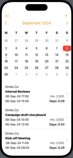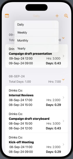 See your time by date on a calendar or view as a list grouped by day, week, month or year
