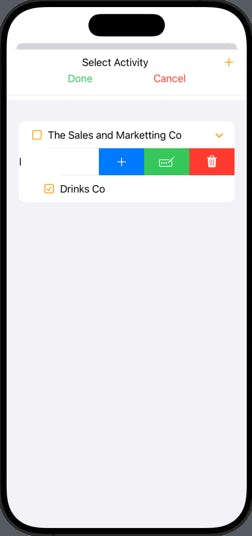 Swipe left to reveal options for adding sub items, editing the row or deleting. Note that deletions are not permitted when activities contain events or where tags are assigned to an event.